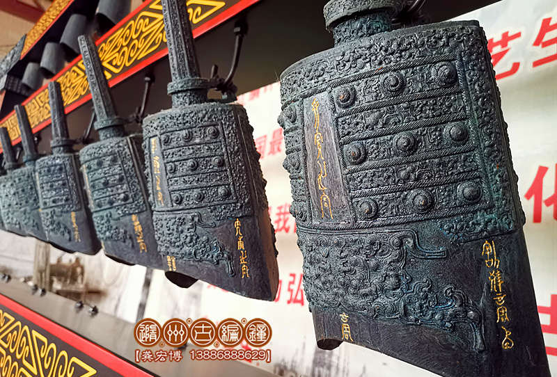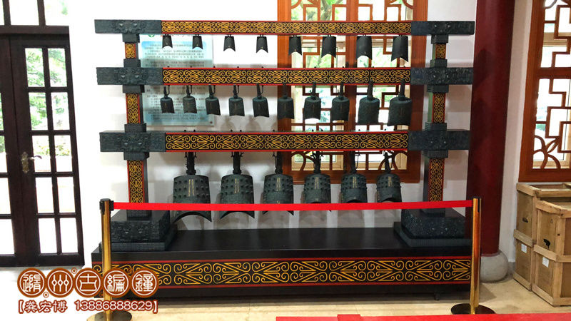 簡介:隨州古編鐘公司按客戶要求定制生產(chǎn)的24件編鐘(南樂歌鐘),編鐘為錫青銅鑄造并按442Hz調(diào)音,分3層懸掛方式排列,音階達(dá)3個(gè)半八度,可以演奏古今中外樂曲,可以和任何樂器搭配演奏。