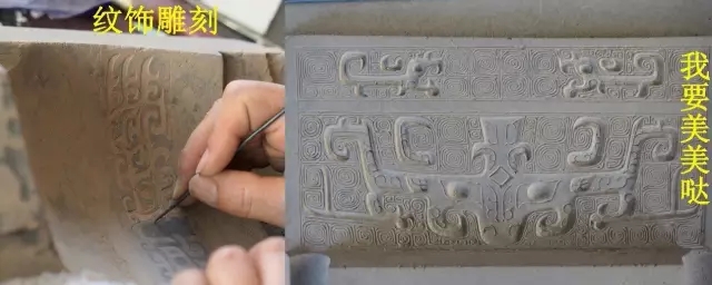 需要注意的是,刻出來(lái)的紋飾與澆鑄出來(lái)、體現(xiàn)在器物上的紋飾是反的,凸起處在器物上就相應(yīng)的是凹面。