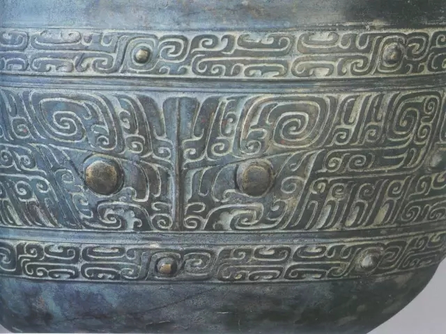 青銅器剛鑄造完就是這個(gè)顏色,因?yàn)楸砻娴你~在高溫下氧化了,呈現(xiàn)在我們面前的就是這種青灰色。經(jīng)打磨拋光后也不是我們常見的青銅器的顏色,而是非常漂亮的金黃色。博物館里展出的青銅器是經(jīng)過(guò)漫長(zhǎng)的歲月沉淀,表面已發(fā)生氧化銹蝕,才呈現(xiàn)藍(lán)斑綠銹。所以“青銅”只是我們現(xiàn)代人的叫法,商周時(shí)代青銅被稱為“金”或者“吉金”。