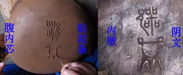 泥芯的表面需進(jìn)行修整,如想在器物內(nèi)壁留下銘文,這時(shí)候就可以在腹內(nèi)芯上貼泥條了。