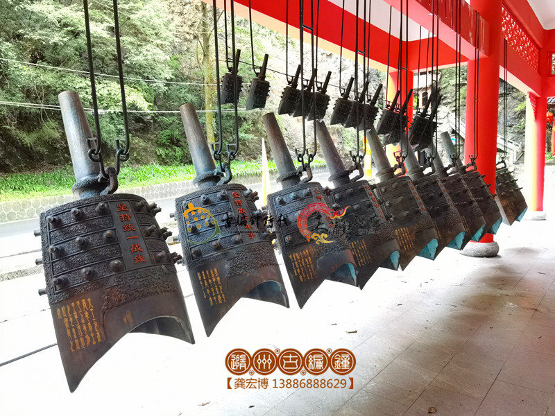 2023年7月,隨州古編鐘公司制作的10件大型曾侯乙甬鐘及一組旋律編鐘,在堯治河旅游景區(qū)完成安裝工作。當(dāng)悠悠鐘聲回蕩山谷時(shí),它那古樸渾厚的樂(lè)音,激蕩起人民對(duì)黨的赤誠(chéng)忠心,又仿佛在訴說(shuō)革命先輩對(duì)未來(lái)的期望。這次將編鐘作為文化的載體,展現(xiàn)了中華歷史的厚重和新時(shí)代征程的拓印,這份紀(jì)念豐富了景區(qū)的文化內(nèi)涵,映襯了自然景色,讓游客在旅途中感受山水古樂(lè)的酣暢淋漓。